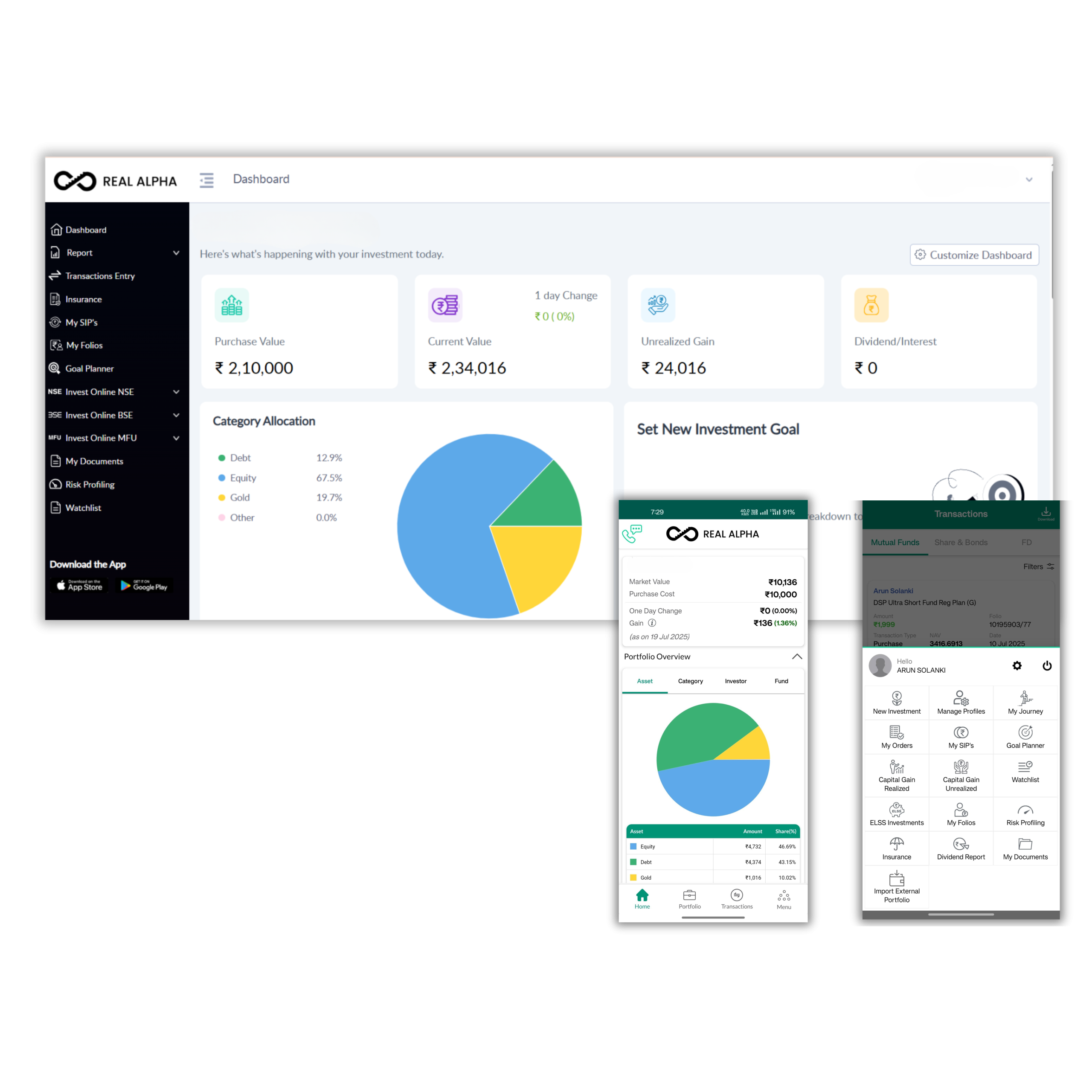 We at Real Alpha help you create Mutual fund investment plans. Whether it’s building your personalised portfolio, providing complete implementation support, or simplifying financial education, we’re here to guide you through it all.